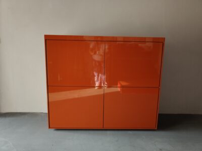 Madia Slim, Poliform sistema di apertura ad ante battenti con push-pull finitura: Laccato lucido arancione dimensioni: L 140 h 120 P 54